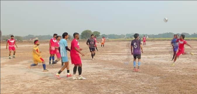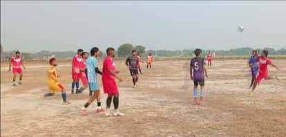 बेलौनाकला गांव में फुटबाल खेलते खिलाड़ी। संवाद