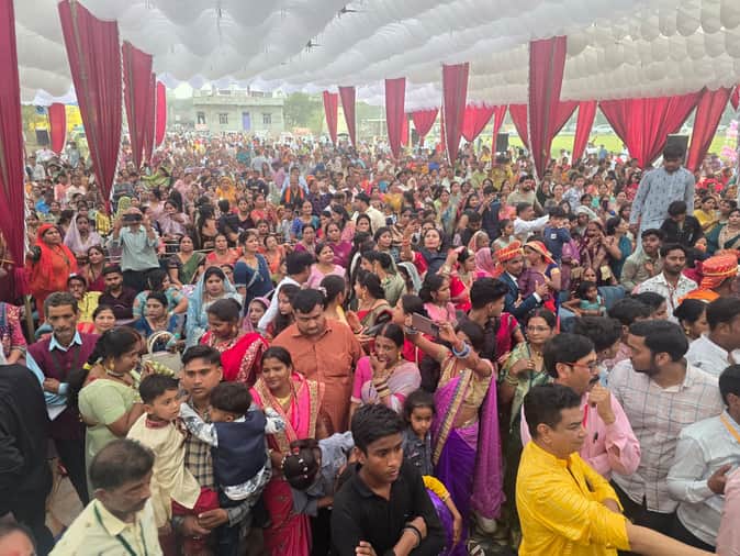 मुंगराबादशाहपुर। सामूहिक विवाह कार्यक्रम में आए लोग। स्रोत-संवाद