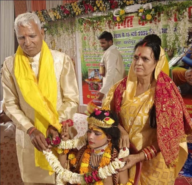 सिंगरामऊ क्षेत्र के घाघरपारा में आयोजित श्री मद् भागवत कथा में निकाली गई झांकी। संवाद