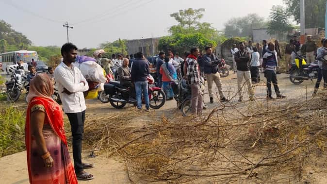 Jhansi: ग्रामीणों ने लगाया सड़क पर जाम, बोले- चोरी करते पकड़ी कार लेकिन पुलिस ने नहीं की कार्रवाई