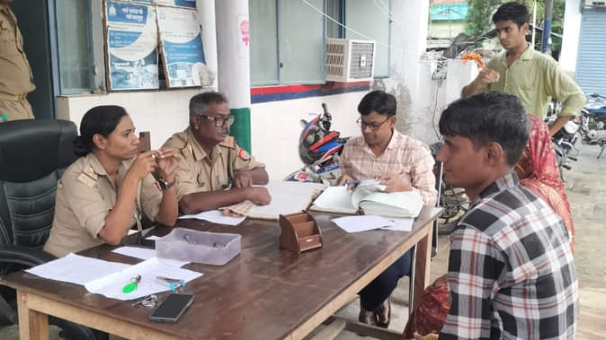 किसान को परिजन के सुपुर्द करती पुलिस