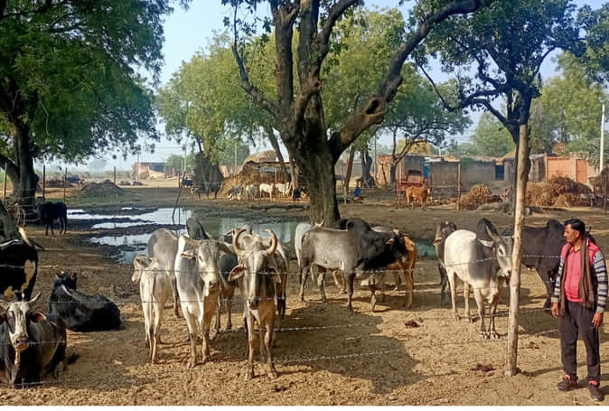 जिसके बाद उन्होंने खुद ही कुछ करने की ठानी। अन्य किसानों से बातचीत कर एक समिति बनाई और चंदा कर तकरीबन 25 हजार रुपये इकट्ठा किए। जिससे बल्ली और तार की व्यवस्था की और गांव के समीप ढाई बीघे के एक नीम के बाग के आधे हिस्से की तारबंदी कर अस्थायी गोशाला बना दी। यहां एक तालाबनुमा गड्ढा भी है।