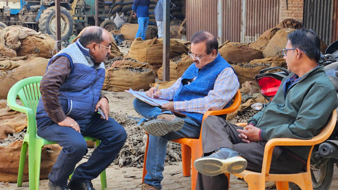 तंबाकू गोदाम में जांच पड़ताल करती जीएसटी टीम