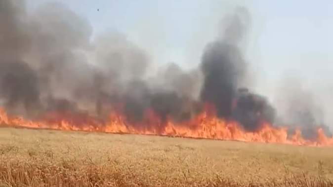 Ghatampur: सरैया गांव के पास लगी भीषण आग से करीब दो सौ बीघा फसल जली