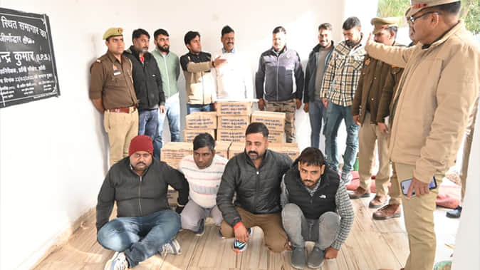 Jalaun: कार से 40 पेटी शराब बरामद, चार बदमाश गिरफ्तार, एसपी ने किया खुलासा