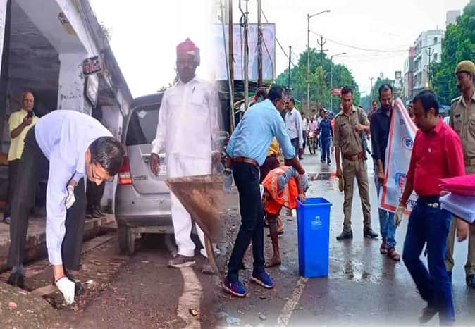 कानपुर: पैकेजिंग छोड़ बाकी सिंगल यूज प्लास्टिक आज से बंद, शहर की सड़कों पर सफाई करते नजर आए अधिकारी