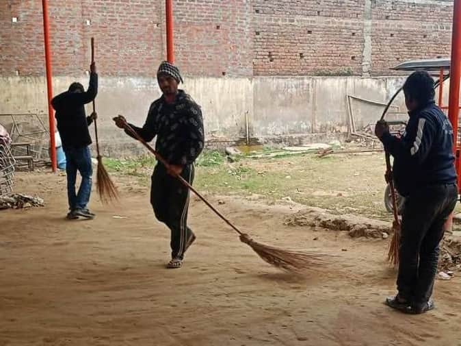 फौटो27सोरोंजी में हिन्दू सम्मेलन स्थल पर्यटक आवास गृह पर सफ़ाई कार्य करते कर्मचारी। संवाद