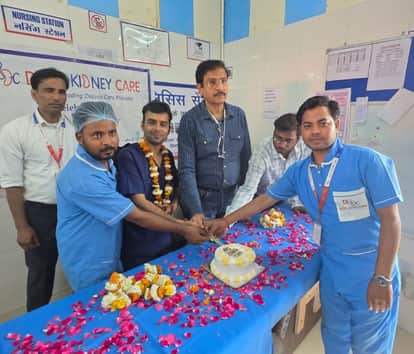 फोटो10किडनी दिवस पर डायलीसिस यूनिट पर केक काटते सीएमएस डॉ.संजीव सक्सेना साथ में यूनिट प्