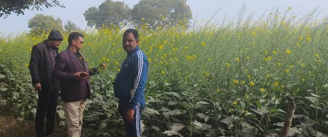 फोटो13पटियाली के गांव बढौला में सरसों की फसल का निरीक्षण करते जिला कृषि अधिकारी डॉ.अवधेश मि