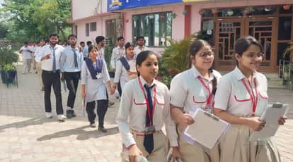 फोटो06कासगंज में एनआर पब्लिक स्कूल सीबीएसई परीक्षा केंद्र से परीक्षा देकर निकलते परीक्षार्