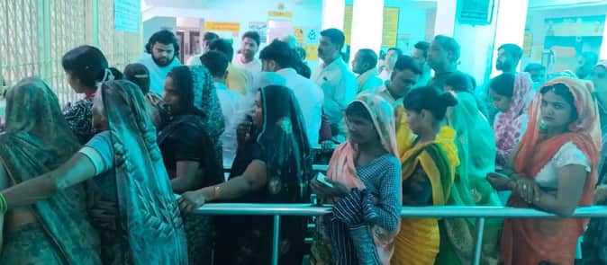 फोटो01जिला अस्पताल में पर्चा काउंटर पर लगी भीड़। संवाद
