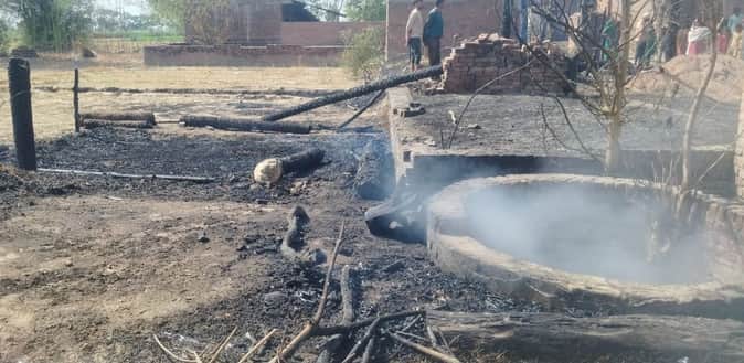 Kasganj News: अज्ञात कारणों से पांच झोपड़ियों में लगी आग, एक मवेशी की मौत