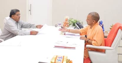 फोटो10जर्जर सड़क के निर्माण का प्रस्ताव लखनऊ में मुख्यमंत्री को सौंपते सदर विधायक देवेंद्र रा