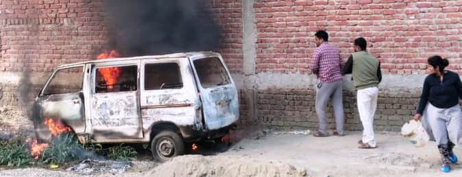 Kasganj News: वैन में संदिग्ध हालात में आग लगी