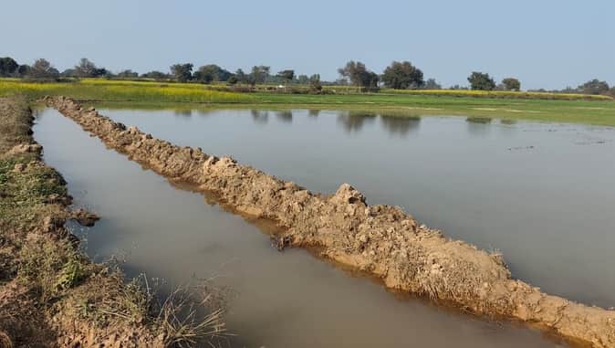 Kasganj News: खंदी कटने से किसानों के खेतों में भरा माइनर का पानी