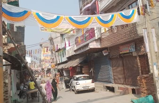 फोटो06सोरोंजी में होली पर्व की पूर्व संध्या पर लगाए जा रहे तोरण द्वार व रंग बिरंगी झालरें।संव