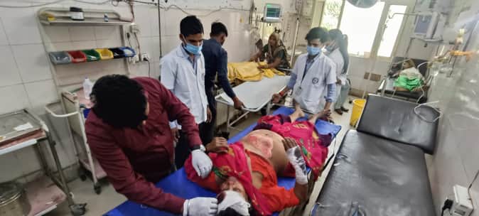 फोटो03जिला अस्पताल में घायल का उपचार करते स्वास्थ्य कर्मी। संवाद