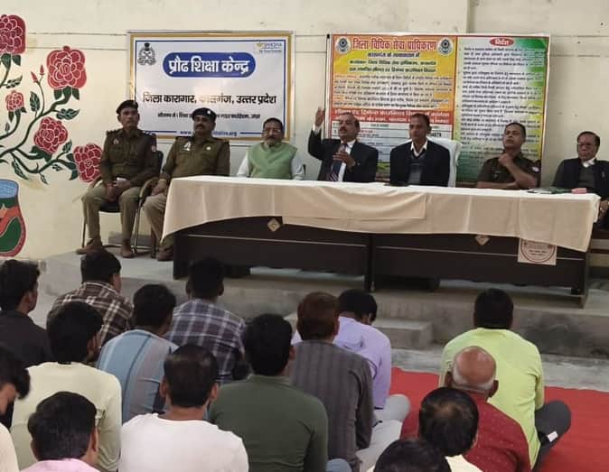 फोटो19जिला कारागार में आयोजित विधिक साक्षरता जागरुक शिविर में मंचासीन अपर जिला जज विजय कुम