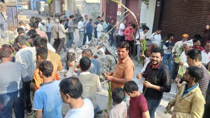फोटो 21 मोहल्ला मंडी धर्मदास में आखत डालते मोहल्ले के लोग। संवाद