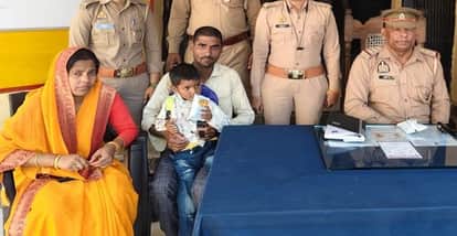 फोटो 39 - ढोलना थाने में परिजन को सकुशल मासूम को सुपुर्द करती पुलिस। स्राेत : पुलिस मीडिया सेल