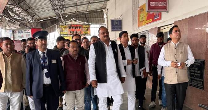 फोटो06कासगंज में जंक्शन का निरीक्षण करते सपा सांसद देवेश शाक्य साथ में अन्य । स्रोत:स्वयं