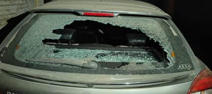 कार का टूटा शीशा। स्रोत- पीड़ित