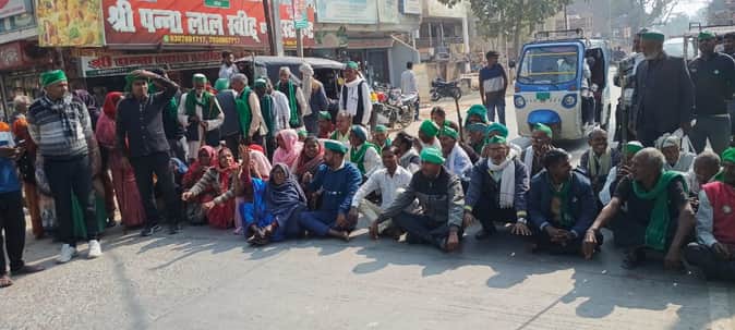 चायल तहसील के समाने मनौरी तिल्हापुर मोड़ रोड जाम करते भाकियू कार्यकर्ता, संवाद
