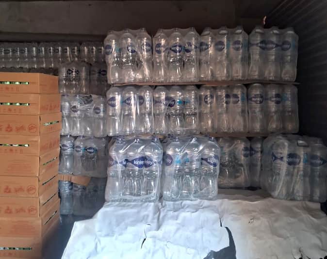 करारी कस्बा स्थित गोदाम में रखी पानी की बोतलें। संवाद
