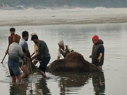 Kaushambi News: कड़ा में गंगा की धारा में फंसा ऊंट