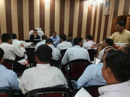 कड़ा में सचिवों के साथ समीक्षा बैठक करते खंड विकास अधिकारी। स्रोत: विभाग