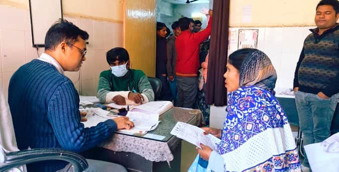 मेडिकल कॉलेज की ओपीडी में दमा के मरीज का इलाज करते डॉक्टर। संवाद