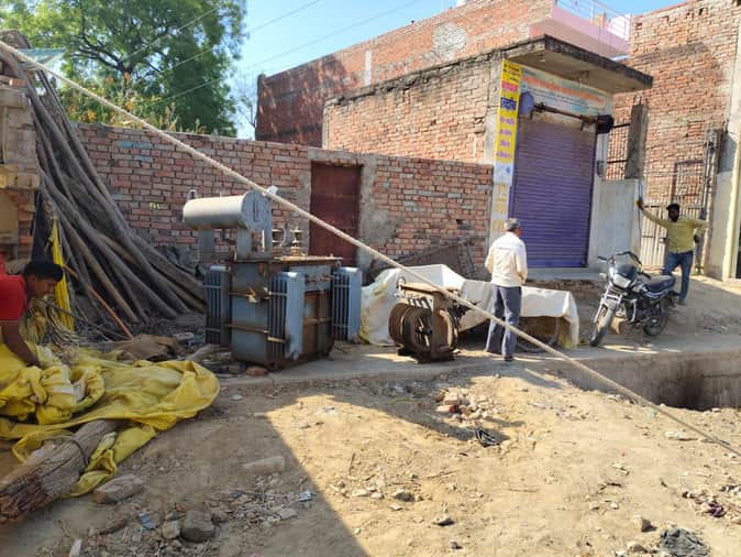 सड़क चौड़ीकरण के चलते कसेंदा गांव में हटाया गया ट्रांसफार्मर। स्रोत ग्रामीण