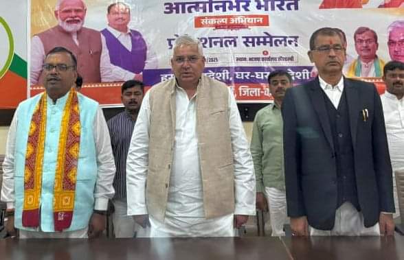मंत्री मयंकेश्वर शरण सिंह ने कहा कि आत्मनिर्भर भारत संकल्प अभियान का उद्देश्य प्रत्येक नागरिक को स्वावलंबन की भावना से जोड़ना और हर घर स्वदेशी के मंत्र को जन-जन तक पहुंचाना है।
