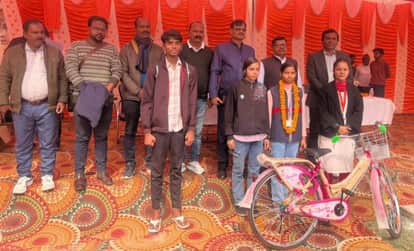बुद्ध इंटर कालेज में अतिथियों के साथ पुरस्कृत प्रतिभागी। श्रोत सोशल मीडिया