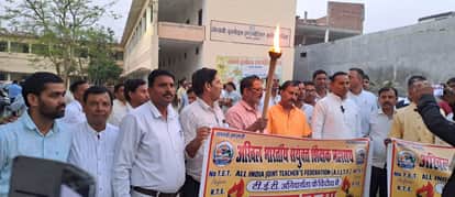 Kushinagar News: टीईटी की अनिवार्यता के विरुद्ध कैंडल मार्च
