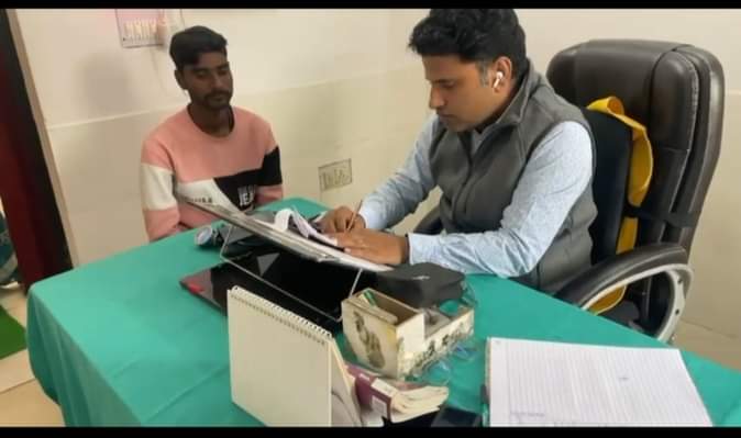 लक्ष्मीगंज में मरीज का इलाज करते चिकित्सा प्रभारी डाॅ. संतोष। स्रोत-सोशल मीडिया