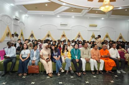 भगवान बुद्ध की निर्वाणस्थली कुशीनगर में विश्व शांति संवाद कार्यक्रम में उपस्थित विश्व छात्र व
