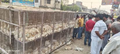 Kushinagar News: बेकाबू होकर पलटी मुर्गी लदी पिकअप, चार घायल