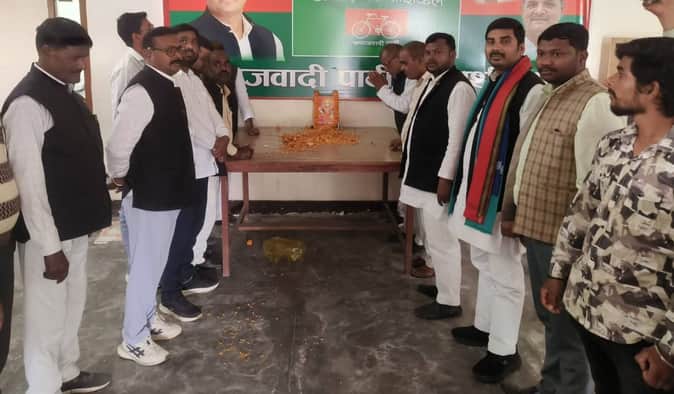 सपा कार्यालय पर राष्ट्र संत शिरोमणि गाडगे की जयंती मनाते कार्यकर्ता। स्रोत विज्ञप्ति