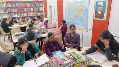 पडरौना नगर पालिका सभागार की लाइब्रेरी में पढ़ाई-लिखाई करतीं छात्राएं। संवाद