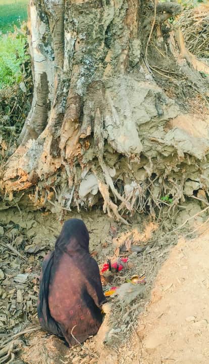 रायपुर में पिपल की पेड खड़े होने के बाद पूजा करतीं महिला ।स्रोत-सोशल मीडिया