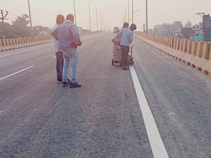 Kushinagar News: ओवरब्रिज पर थर्मो प्लास्टिक मार्किंग का कार्य शुरू