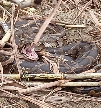 गन्ने के खेत में दिखा अजगर ।स्रोत-सोशल मीडिया