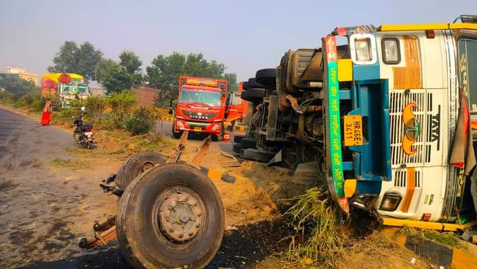 Kushinagar News: हाईवे पलटे दो ट्रक, दो घंटे बंद रहा एक लेन