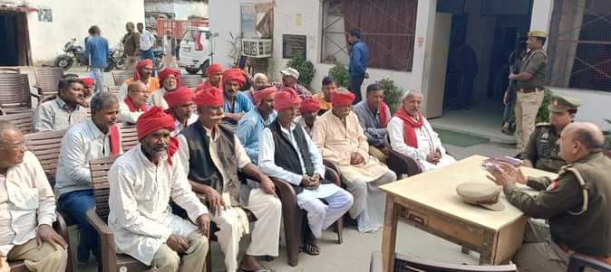 रामकोला थाने में आयोजित बैठक में मौजूद चौकीदार।स्रोत-सोशल मीडिया