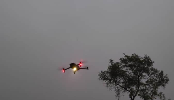 बाघ की लोकेशन के लिए वनविभाग द्वारा उड़ाया जा रहा ड्रोन। संवाद