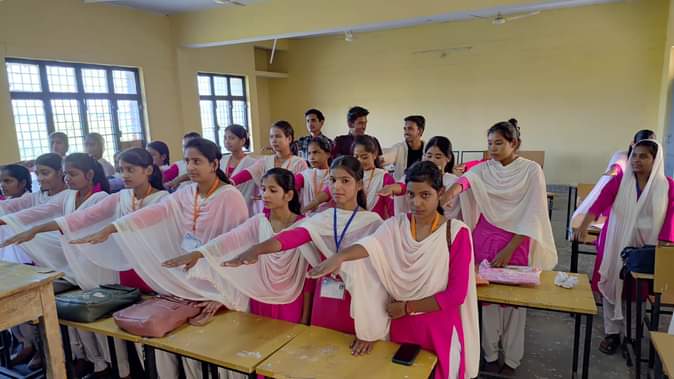 पलिया के डिग्री कॉलेज में नशा मुक्ति को लेकर शपथ लेतीं छात्राएं। स्रोत : कॉलेज