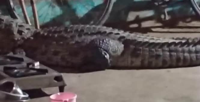 घर में घुसकर बैठा मगरमच्छ। स्रोत: सोशल मीडिया