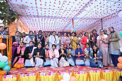 कार्यक्रम में अपनी प्रतिभा का दम दिखाने वाली बेटियों के साथ अतिथिगण।संवाद