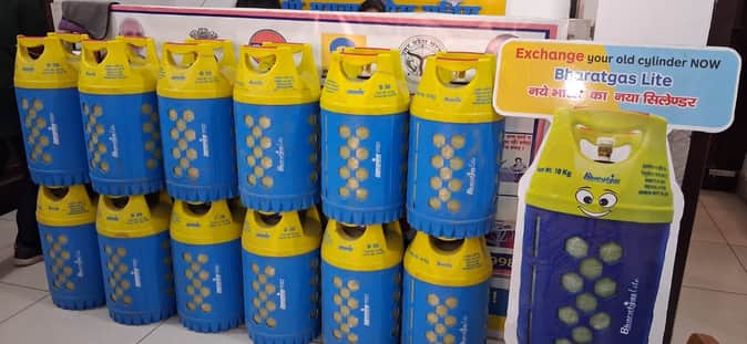 एजेंसी पर रखे 10 किलों के गैस सिलिंंडर। स्रोत : विभाग